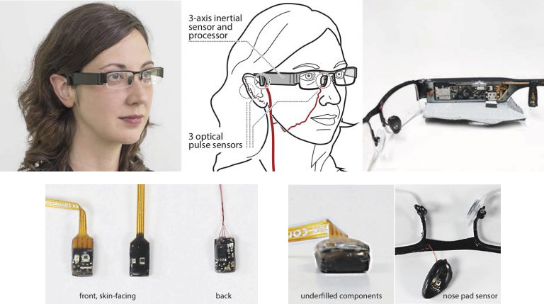 Researchers at Microsoft have been working on a wearable set of glasses that can measure the blood pressure using a combination of three optical sensors and a three-axis accelerometer. The optical sensors detect heartbeat pulses in three spots on the head, while the accelerometer detects the movement of the head. By keenly discerning the time differences between when the pulses are detected at the three sites, the glasses are able to calculate the so-called “pulse transit time,” essentially the speed at which longitudinal waves travel through the blood vessels. This measure, combined with a bit of other data, can be extrapolated into a fairly accurate blood pressure estimate.